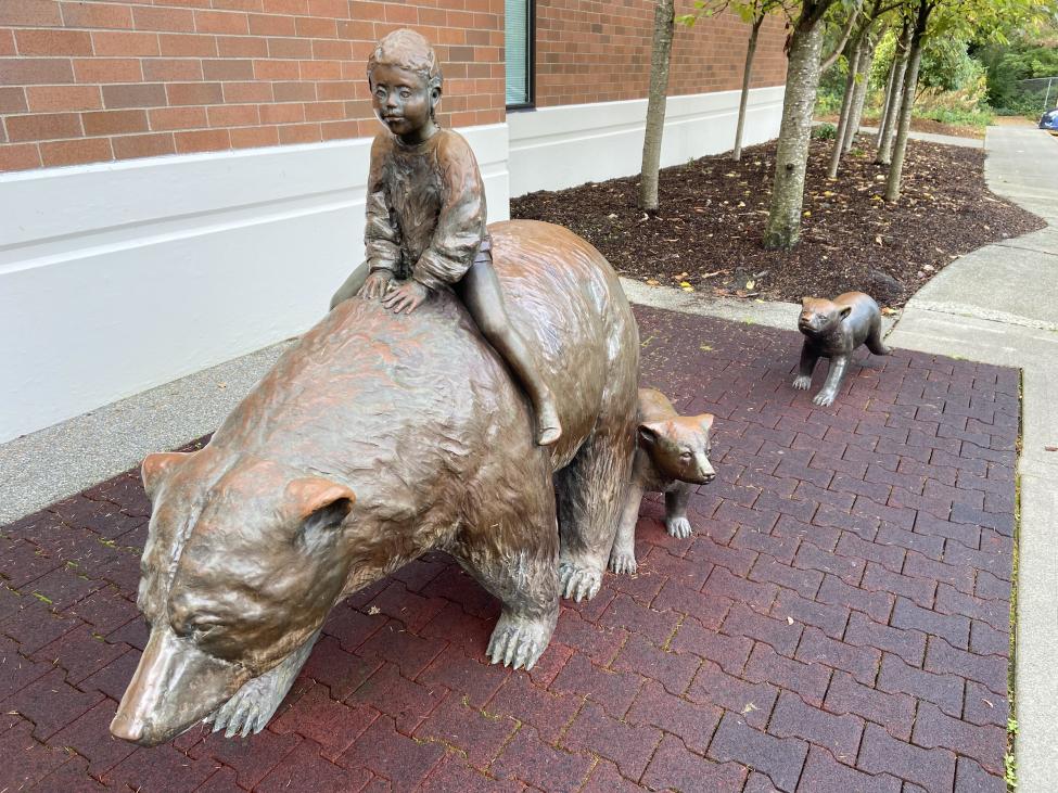 I was greeted with a rush of nostalgia when we arrived at the library because the space is virtually unchanged. The same stained glass adorns the windows, and bronze sculptor Georgia Gerber’s black bear statues are still lumbering past the front entrance begging to be climbed by children of all ages.