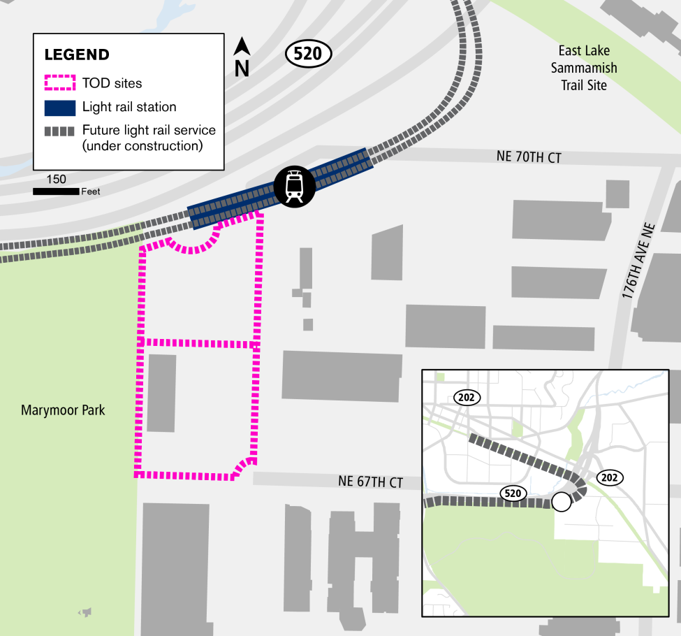 Sound Transit is working to bring transit-oriented development to the Marymoor Village Station area. Sound Transit anticipates having a ±3.5-acre site adjacent to the future Marymoor Village Station once Downtown Redmond Link Extension is complete. The site, located adjacent to Marymoor Park and within the emerging Southeast Redmond neighborhood, would support a vibrant community seamlessly connected to transit.